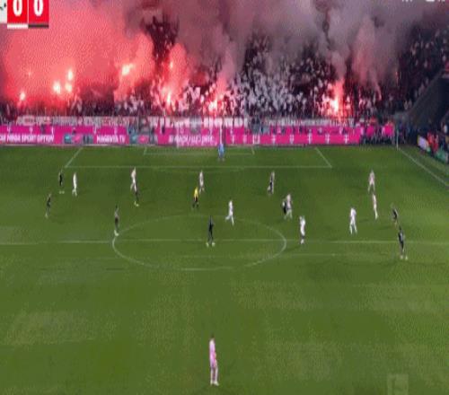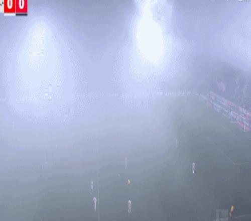 第4分钟,球迷燃放烟火影响视线,比赛短暂暂停