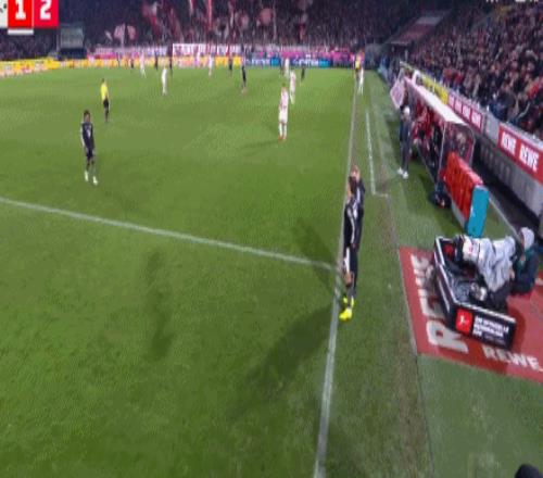 第84分钟,凯恩后场长传,迪亚斯横传助攻卡尔低射破门!科隆1-3拜仁