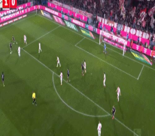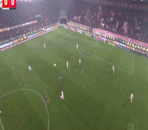 第41分钟,格纳布里失误被断,马伊纳带球反击远射破门!科隆1-0拜仁