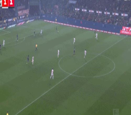 第45+5分钟,将功补过!奥利塞助攻格纳布里小角度破门,科隆1-1拜仁