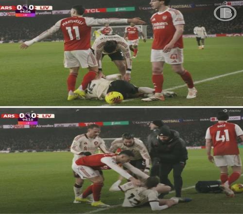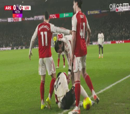 体育播报1月16日宣 英超第21轮阿森纳主场0-0战平利物浦,,布拉德利受伤倒地,马丁内利试图将他推出边线,引发了双方冲突。