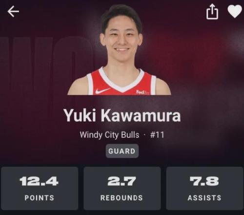 去年休赛期,未能获得灰熊续约合同的河村勇辉,代表公牛参加夏季联赛场均亮相23.9分钟贡献10.2分2.4板6.2助2.2断,随之获得一份双向合同,然而接着便因右小腿疼痛问题被裁掉,前段时间伤愈后与公牛重新签约双向合同。