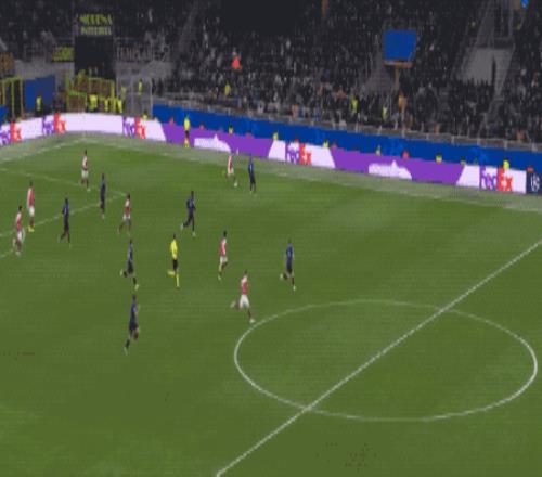 第18分钟,劳塔罗策动反击,小图拉姆的射门被莫斯克拉倒地封堵,巴雷拉的补射被萨利巴挡出,苏西奇一脚怒射,皮球直挂死角。